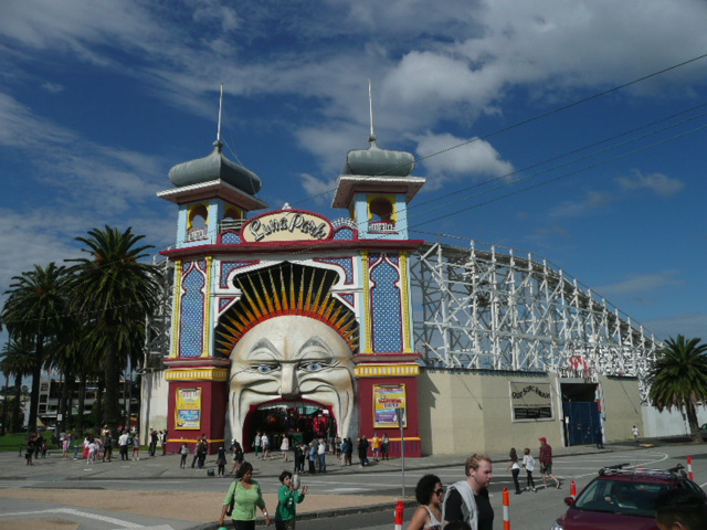 we went to St. Kilda Arts Market and Luna Amusement Park and my first AFL game. AFL stands for Aussie Rules Football and it