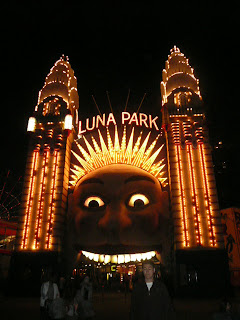 The next day we went to Bondi Beach and laid out in the sun while swimming in the freezing cold ocean. Although it is getting warmer in the U.S. here it is getting cold because it is heading into the winter months. After the beach we walked along the Sydney Harbor Bridge getting to see the Harbor from the air. We also went to Luna Park, an amusement park in Sydney.